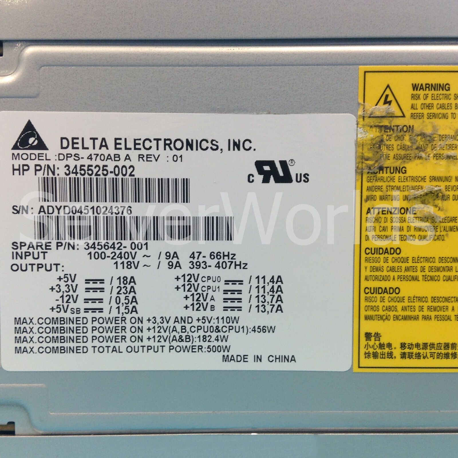 Delta Electronics DPS-470AB-1 500W Server Power Supply DPS-470AB-1A 345525-005 434297-001