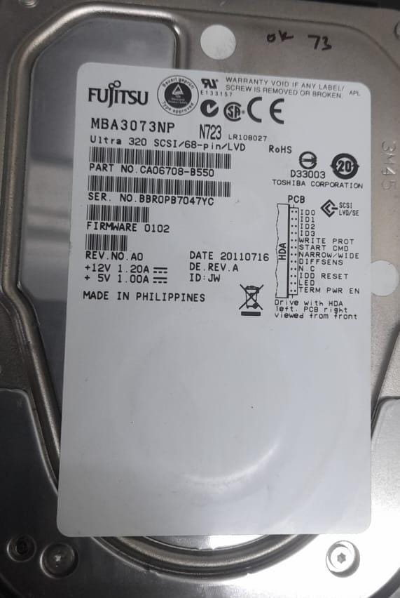 Fujitsu Server Hard Disk FUJITSU MBA3073NP 73GB 68-pin SCSI 15K U320