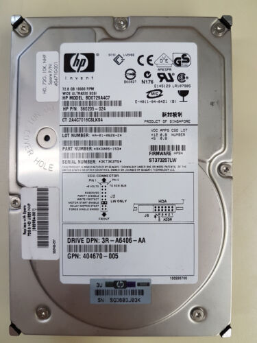 HP BD0729A4C7 72.8GB 3.5" 10K SCSI 68-PIN 360205-024 Hard Disk Drives