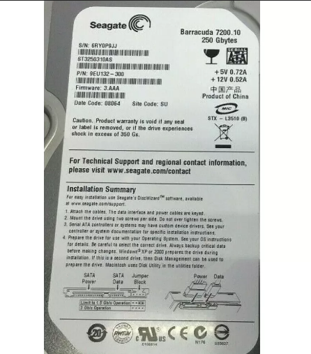 Seagate BarraCuda - 7200.10 ST3250310AS - 250GB - 7200 RPM - SATA 3.0Gb/s 3.5"
