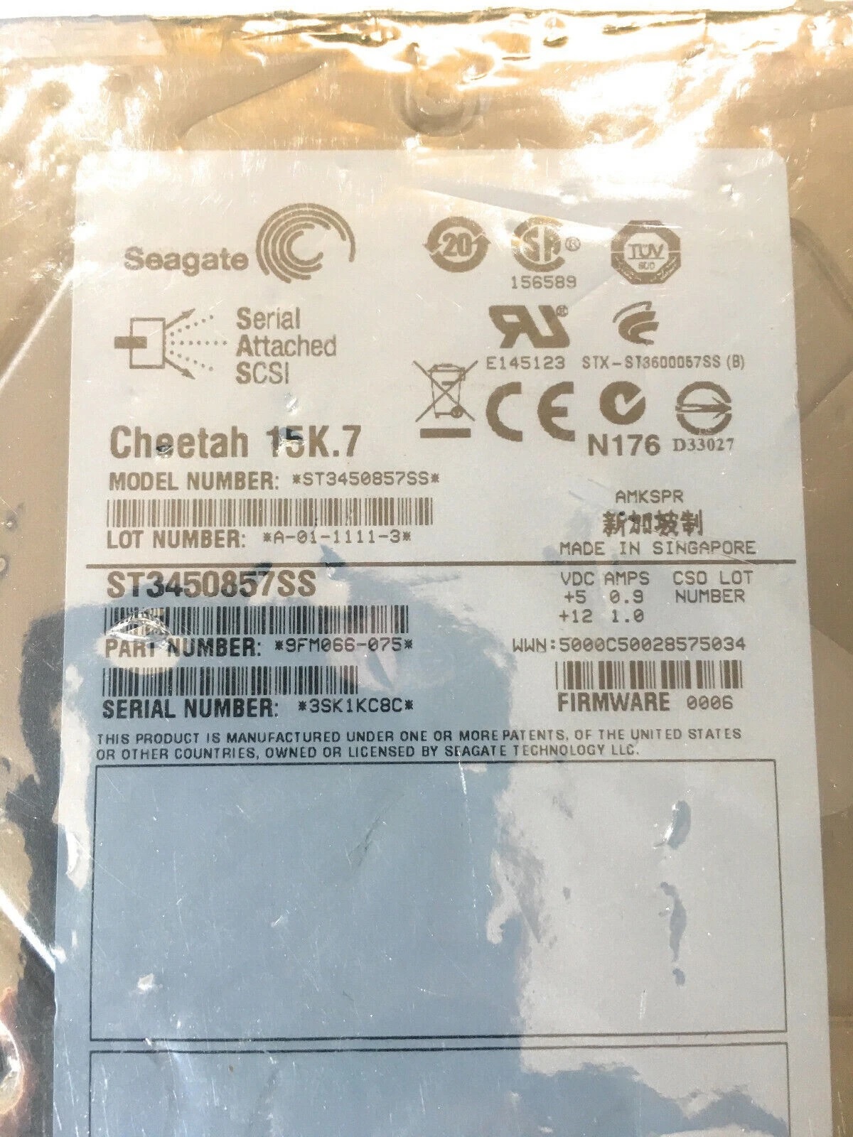 ST3450857SS Seagate Cheetah 15K.7 9FM066-075 3.5" 450GB 15K SAS Hard Disk HDD