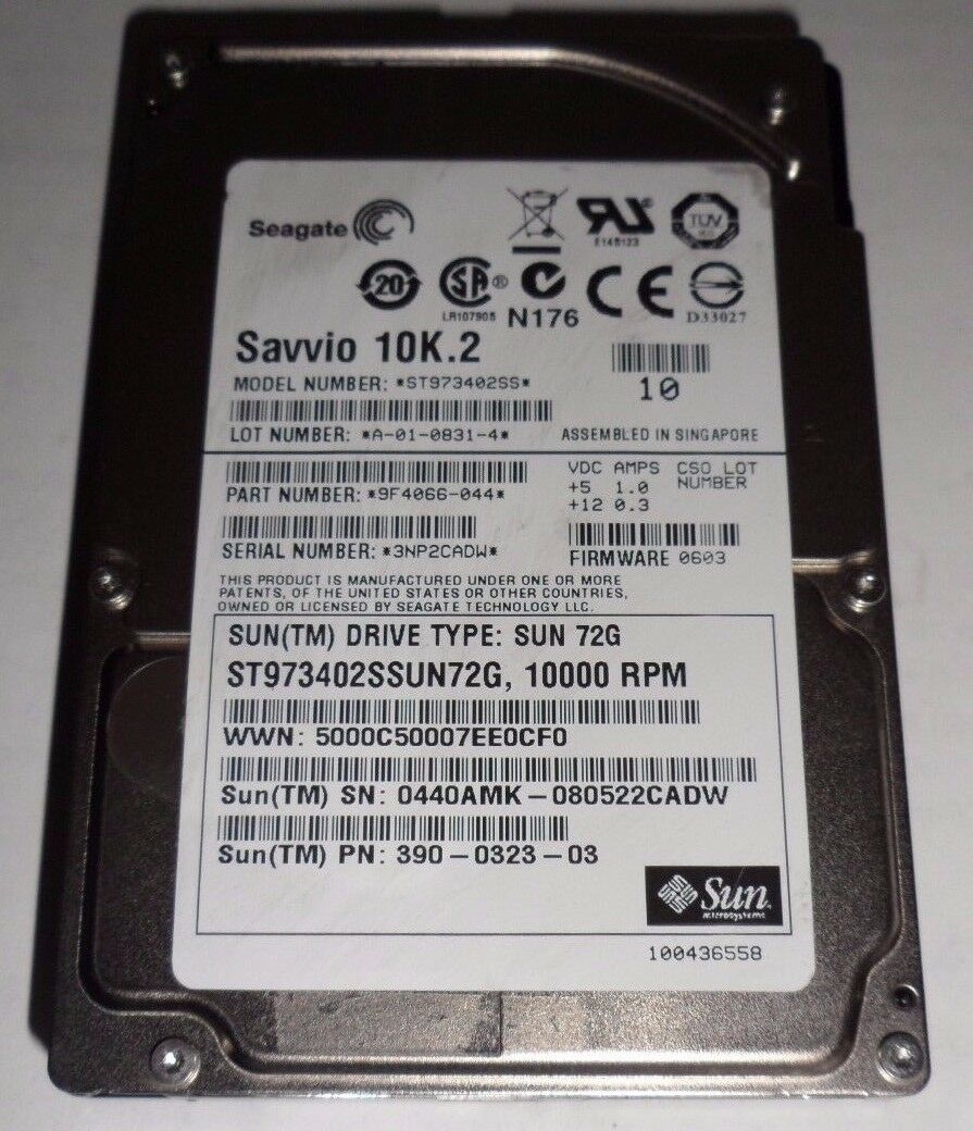 Sun Seagate Savvio ST973401SS ST973401LSUN72G 72GB 10K SAS 2.5" Hard Drive